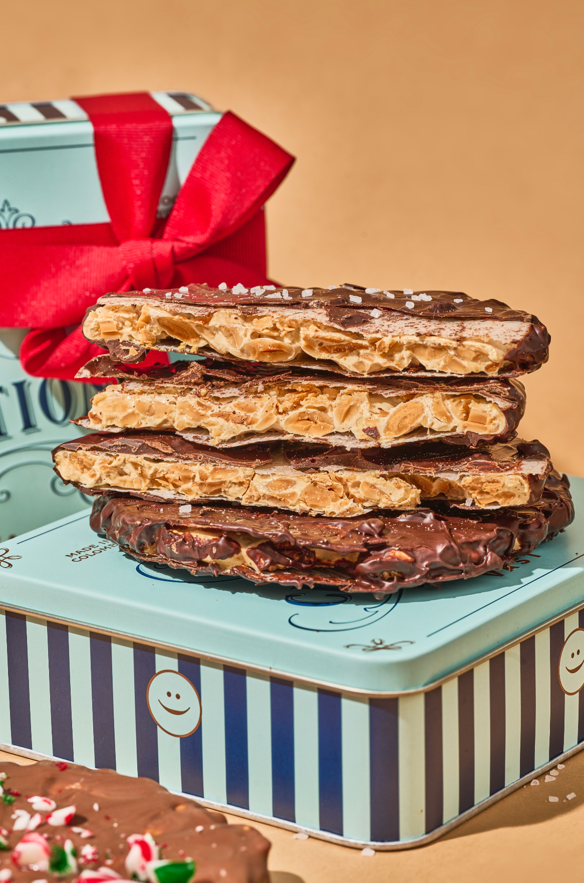 (1) Galleta de turrón de almendras recubierta en chocolate oscuro y sal marina